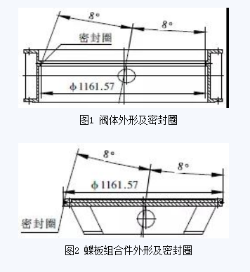 三偏心金屬硬密封蝶閥的密封面是斜錐面,閥體密封圈(圖1)與蝶板組合件密封圈(圖2)的接觸為面接觸,其工作原理是靠驅(qū)動裝置扭力直接帶動蝶板組合件,使蝶板組合件密封圈與閥體密封圈充分接觸后產(chǎn)生彈性變形而密封。三偏心金屬硬密封蝶閥作為一種高性能閥門,具有耐腐蝕性好、密封可靠、開啟力矩小等優(yōu)點。三偏心硬密封電動蝶閥DN1200,其中閥體密封圈材料為1Cr18Ni9Ti,蝶板組合件密封圈材料為復合的不銹鋼板與石棉板夾層組合件,閥體密封圈與蝶板組合件密封圈的加工質(zhì)量直接決定蝶閥密封性能。