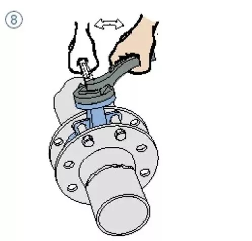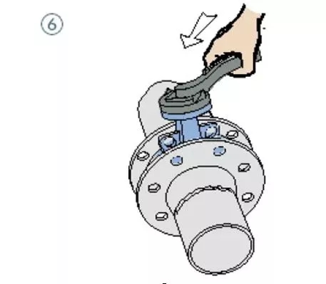7、蝶閥法蘭盤在安裝時必須確保法蘭面和密封橡膠對中,螺釘均勻擰緊,密封面必須貼合完整;如果出現(xiàn)螺釘擰緊力度不均勻會出現(xiàn)橡膠凸起卡住蝶板,或頂住蝶板造成閥桿處泄漏。